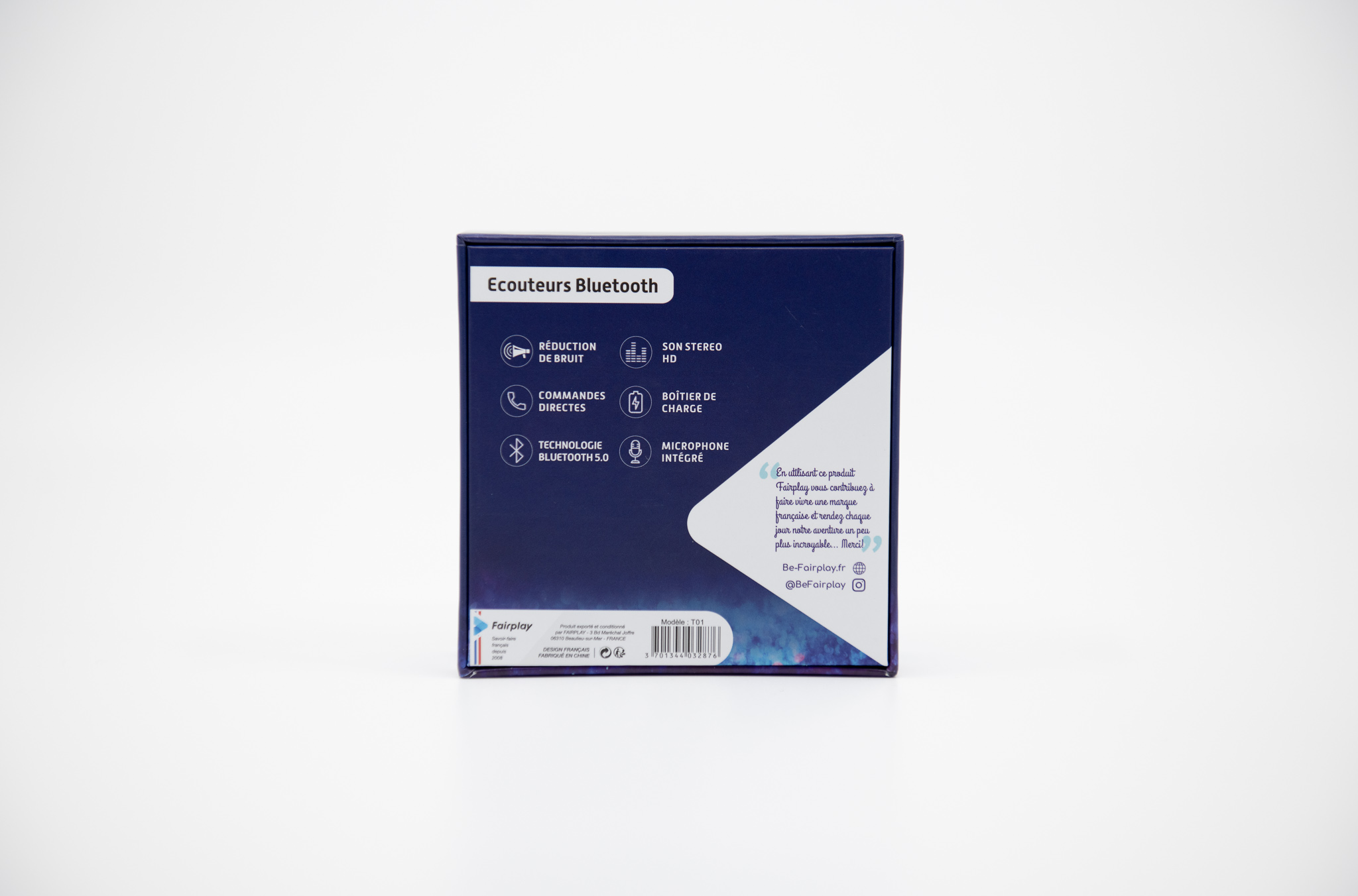 – SON PREMIUM. Au delà du style, nous n’en oublions pas moins que la qualité du son est primordiale. Nos écouteurs Fairplay disposent de bonnes graves et sont bien équilibrés. Ils utilisent le protocole Bluetooth 5.0 permettant une vitesse et une stabilité de transmission sans égal. La portée avec l’appareil émetteur est d’environ 10m.